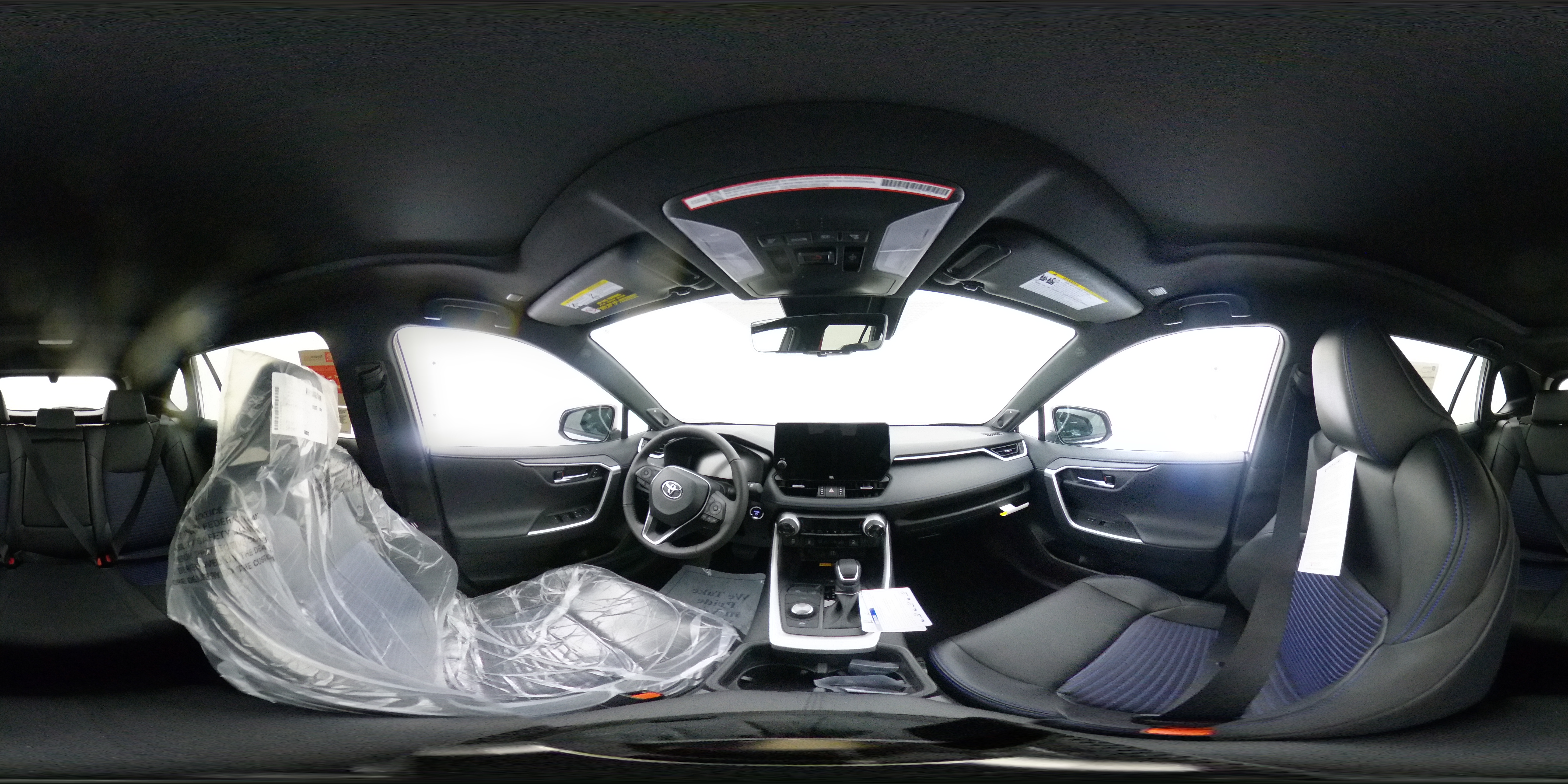 - Black fabric-trimmed headliner