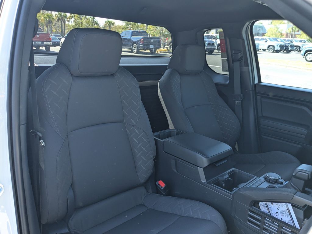 - Fabric-trimmed seats; 6-way manually adjustable driver and front passenger seats with 2-way power-adjustable lumbar support on driver's seat only; fold-flat passenger seat