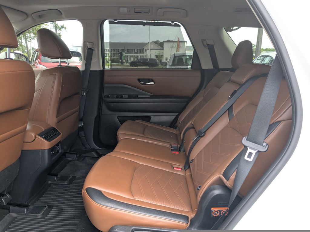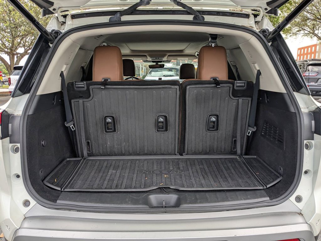 Comfort and convenience are paramount in the Pathfinder Platinum. Enjoy the heated and cooled front seats, the heated steering wheel, and the power liftgate for effortless loading and unloading. The spacious interior, with its 13 speakers and ample cargo space, ensures that every journey is a pleasure.