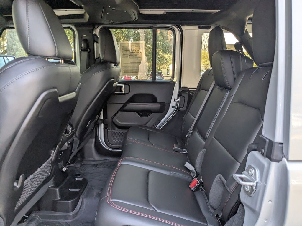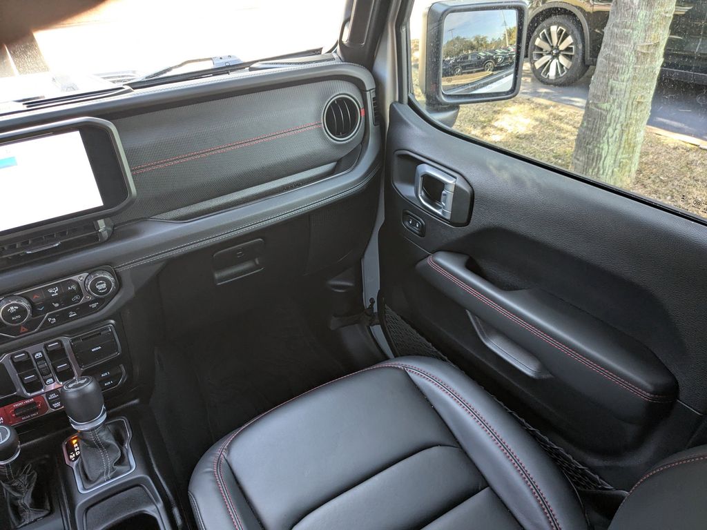 Step inside the cabin, and you'll be surrounded by the epitome of modern luxury. The Wrangler Rubicon offers a commanding presence with its Black Nappa leather seats, power-adjustable driver and passenger seats, and a heated steering wheel for those chilly mornings. The Convenience Group and Safety Group packages take your driving experience to new levels of comfort and confidence, with features like heated front seats, remote start, blind spot monitoring, and more.